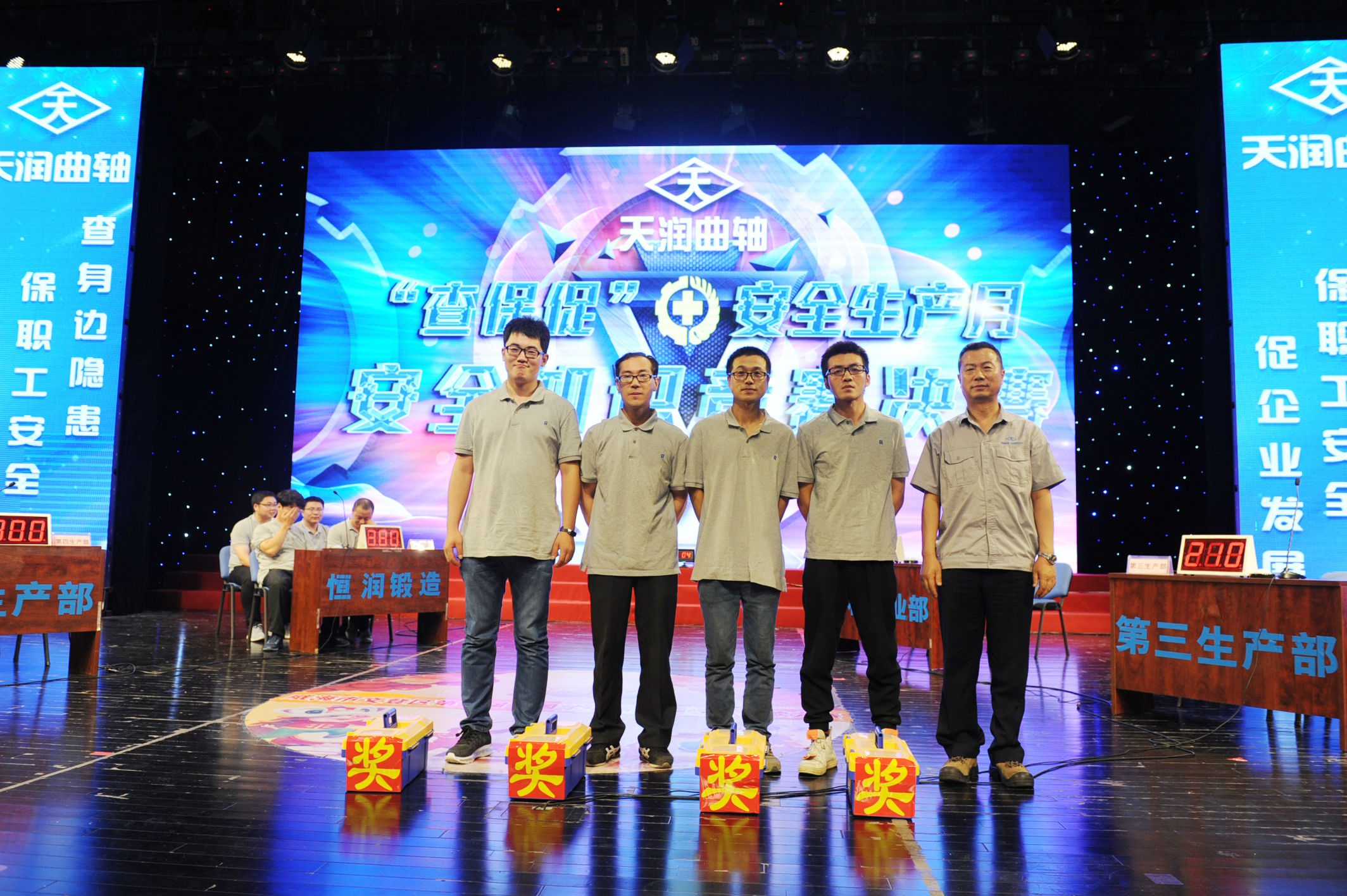 本次知识竞赛共由必答题、抢答题、危害题、攻守题四个竞赛环节及一个互动环节组成。。。。。。。。经由四轮强烈的比拼,,,,,,,,文登恒润铸造有限公司代表队以380分的优异效果夺下此次角逐的冠军,,,,,,,,曲轴事业部第四生产部代表队获得亚军,,,,,,,,连杆事业部、曲轴事业部第三生产部代表队获得季军。。。。。。。。