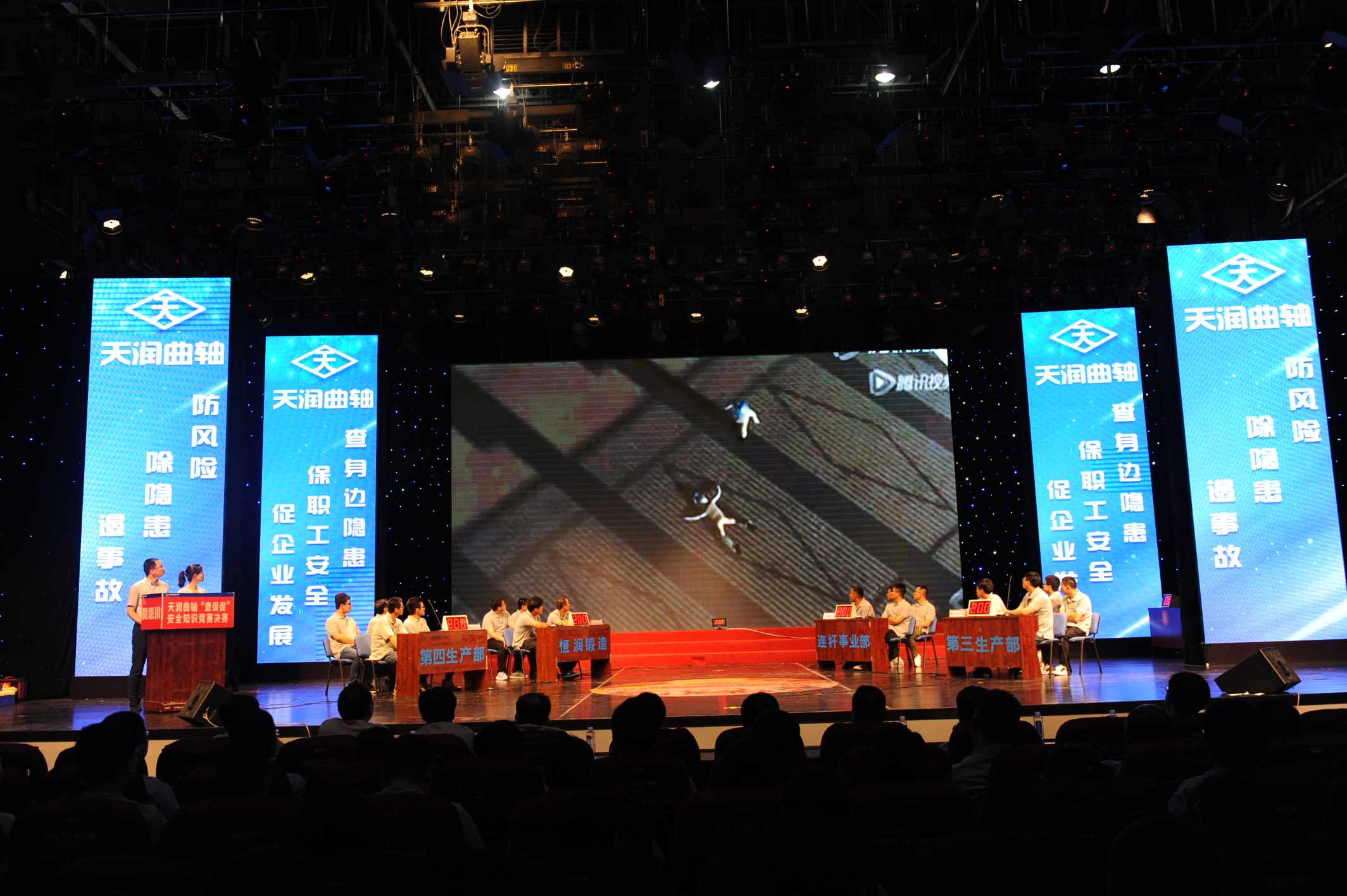 6月27日下昼18:00,,,,,,,,由党委办公室、生产运营管理部团结举行的清静生产月“查保促”清静知识竞赛决赛在文登区广播电视台圆满竣事。。。。。。。。公司常务副总司理周先忠,,,,,,,,副总司理于秋明,,,,,,,,总司理助理林永涛、马明亮、夏丽君等各部分中层以上干部及拉拉队成员,,,,,,,,共计400余人加入角逐。。。。。。。。